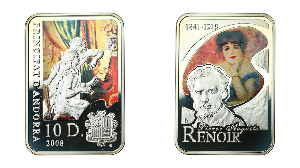 Серебро. 0,841 oz. 0,925. 28,28 г. "Пьер Огюст Ренуар". Цветная эмаль. KM#271. В оригинальной капсуле.