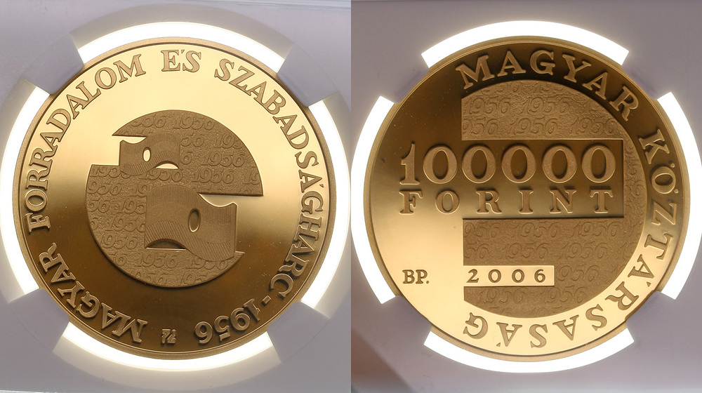 Венгрия. 100000 форинтов 2006 года. Proof. В слабе NGC PF69 ULTRA CAMEO.