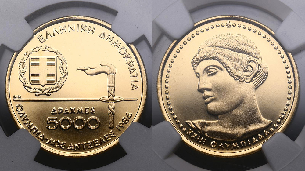 Греция. 5000 драхм 1984 года. Proof. В слабе NGC PF68 Ultra Cameo.