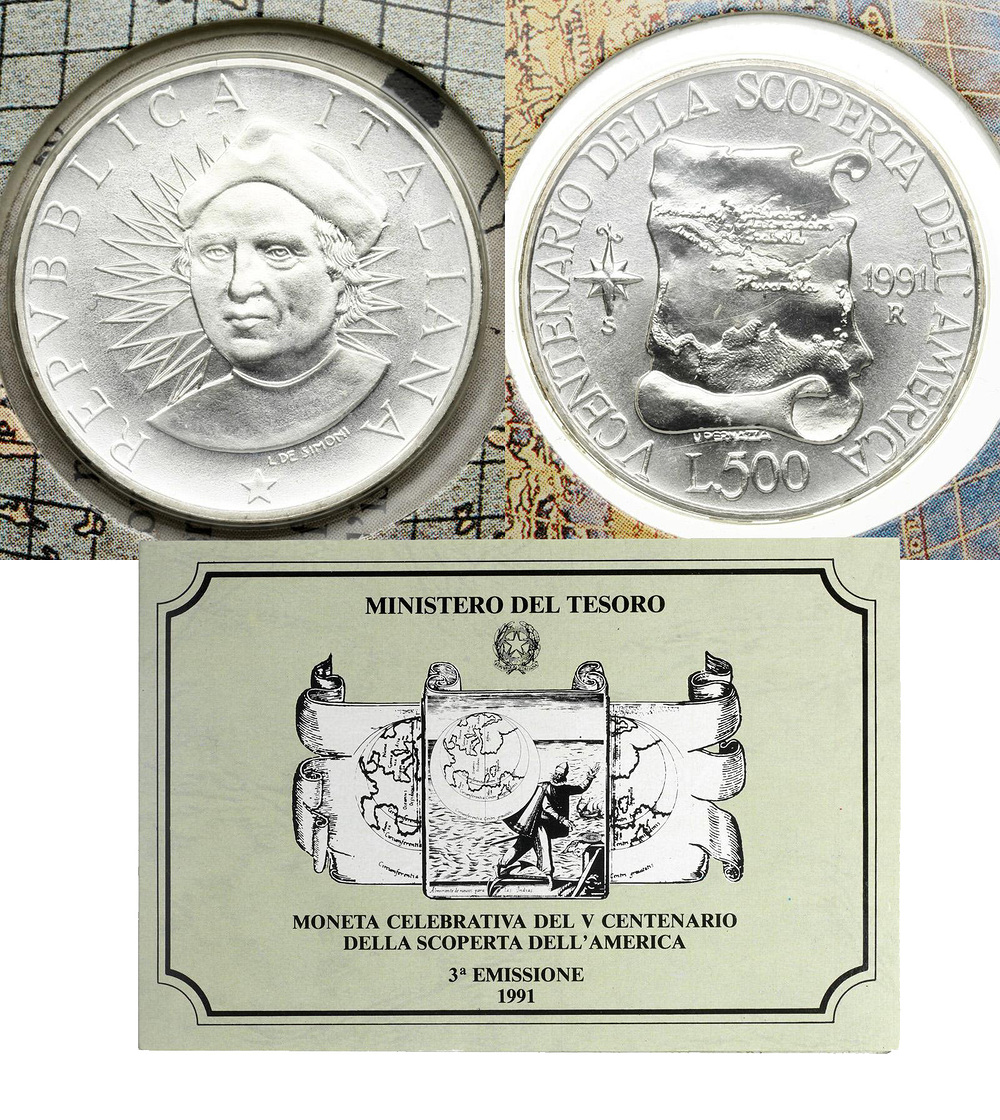 Серебро. 0,2953 oz. 0,835. 11,0 г. "Открытие Америки". КМ#148. В оригинальной упаковке.