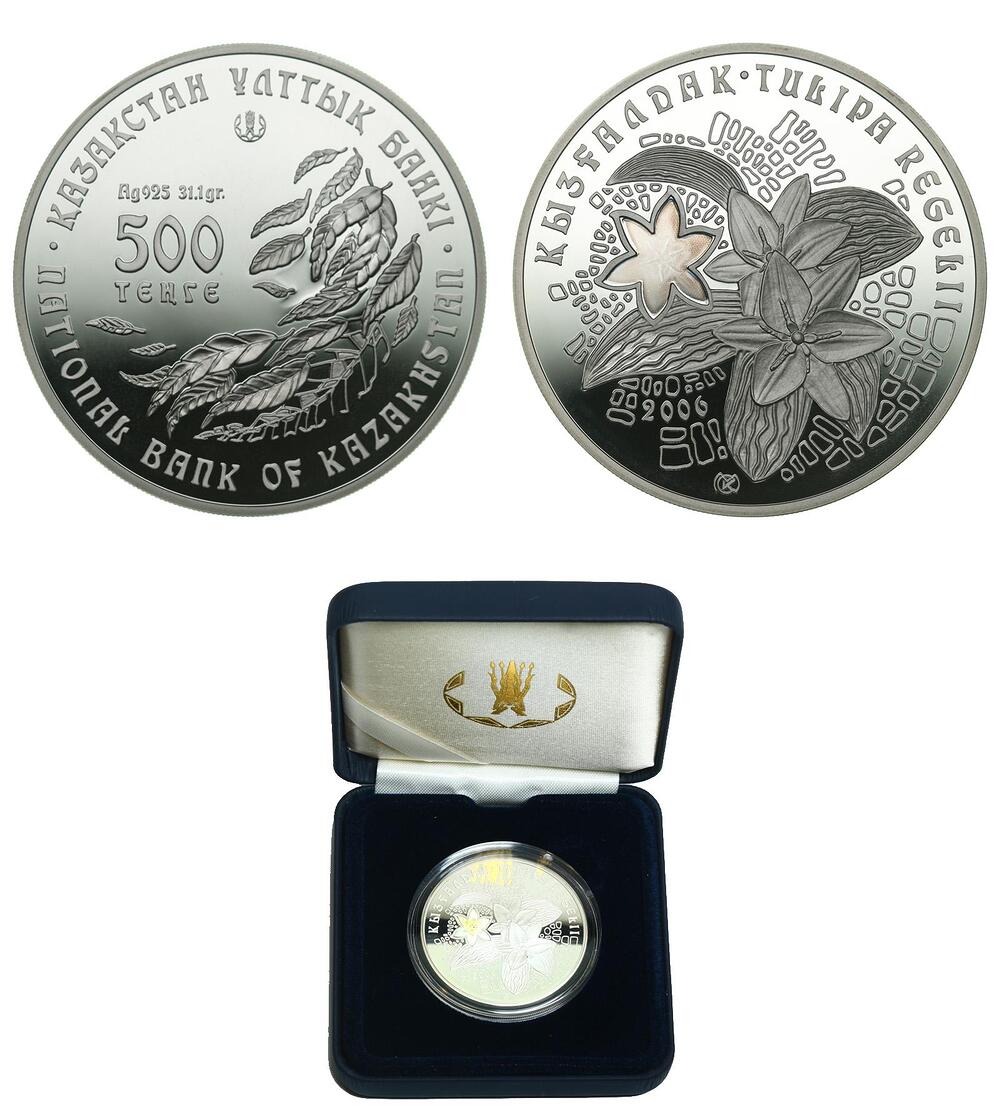 Серебро. 0,925 oz. 0,925. 31.1 г. "Тюльпан Регеля". KM#76. В оригинальной капсуле и коробке. С сертификатом.