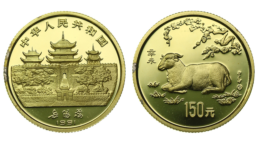 Золото. 0,2358 oz. 0,917. 8,0 г. "Лунный календарь. Овца". KM#366.