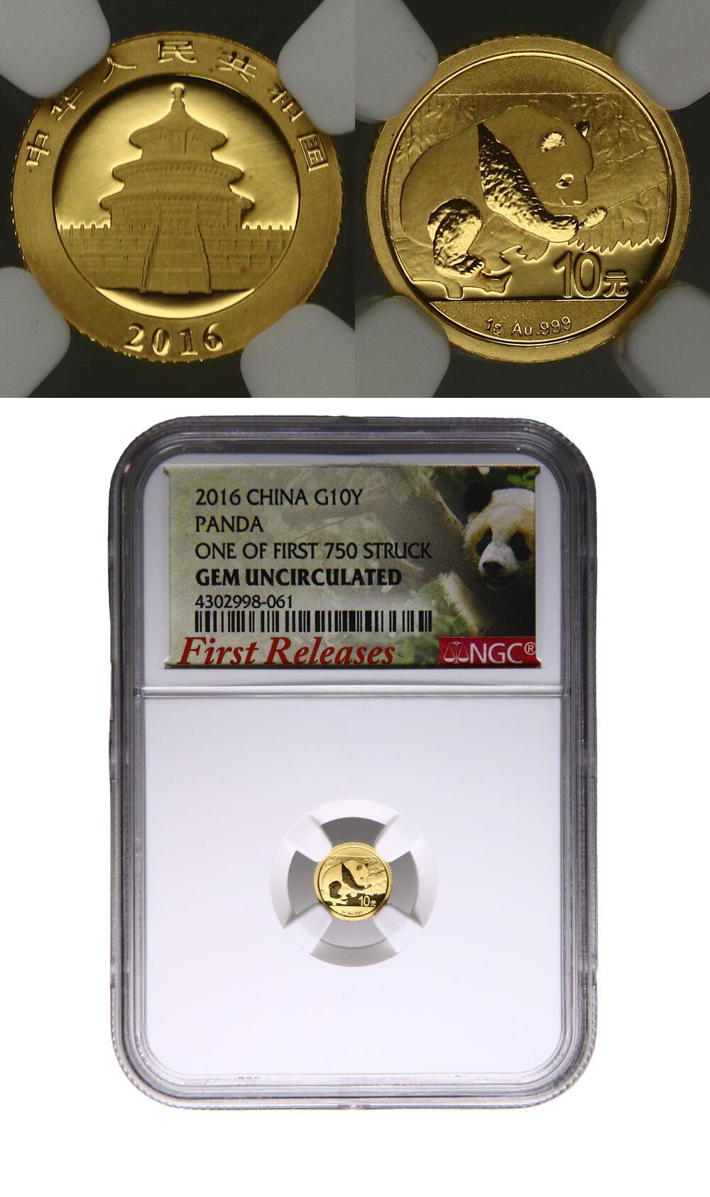 Китай. 10 юаней 2016 года. В слабе NGC Gem Uncirculated.