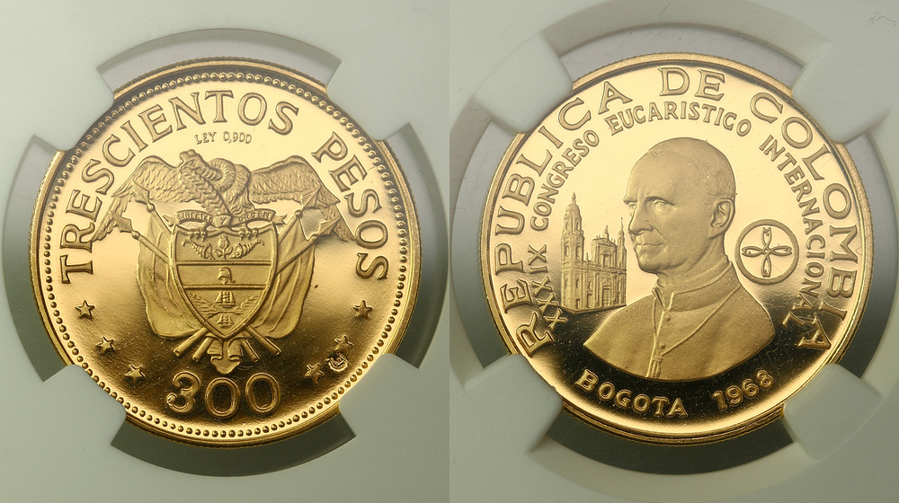 Колумбия. 300 песо 1968 года. Proof. В слабе NGC PF68UltraCameo.