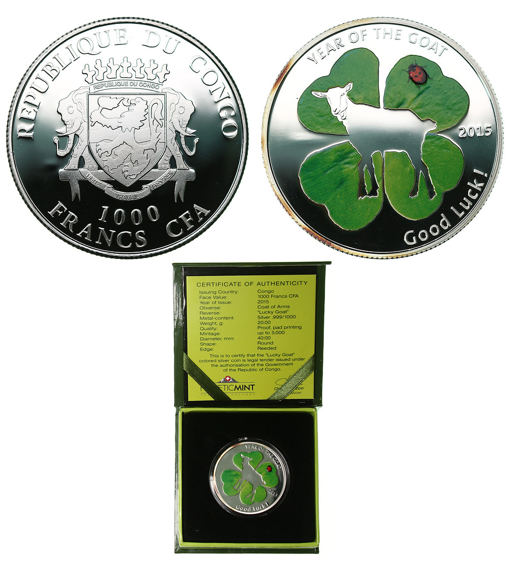 Серебро. 0,6423 oz. 0.999. 20,0 г. "Китайский гороскоп - год козы". UC#206. В оригинальной коробке и капсуле. С сертификатом.