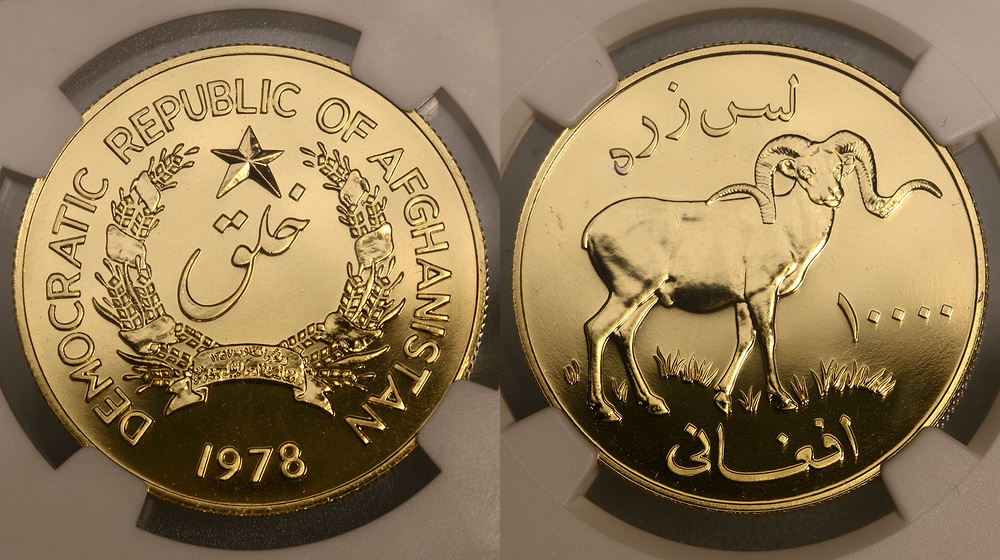 Афганистан. 10000 афгани 1978 года. В слабе NGC MS68.