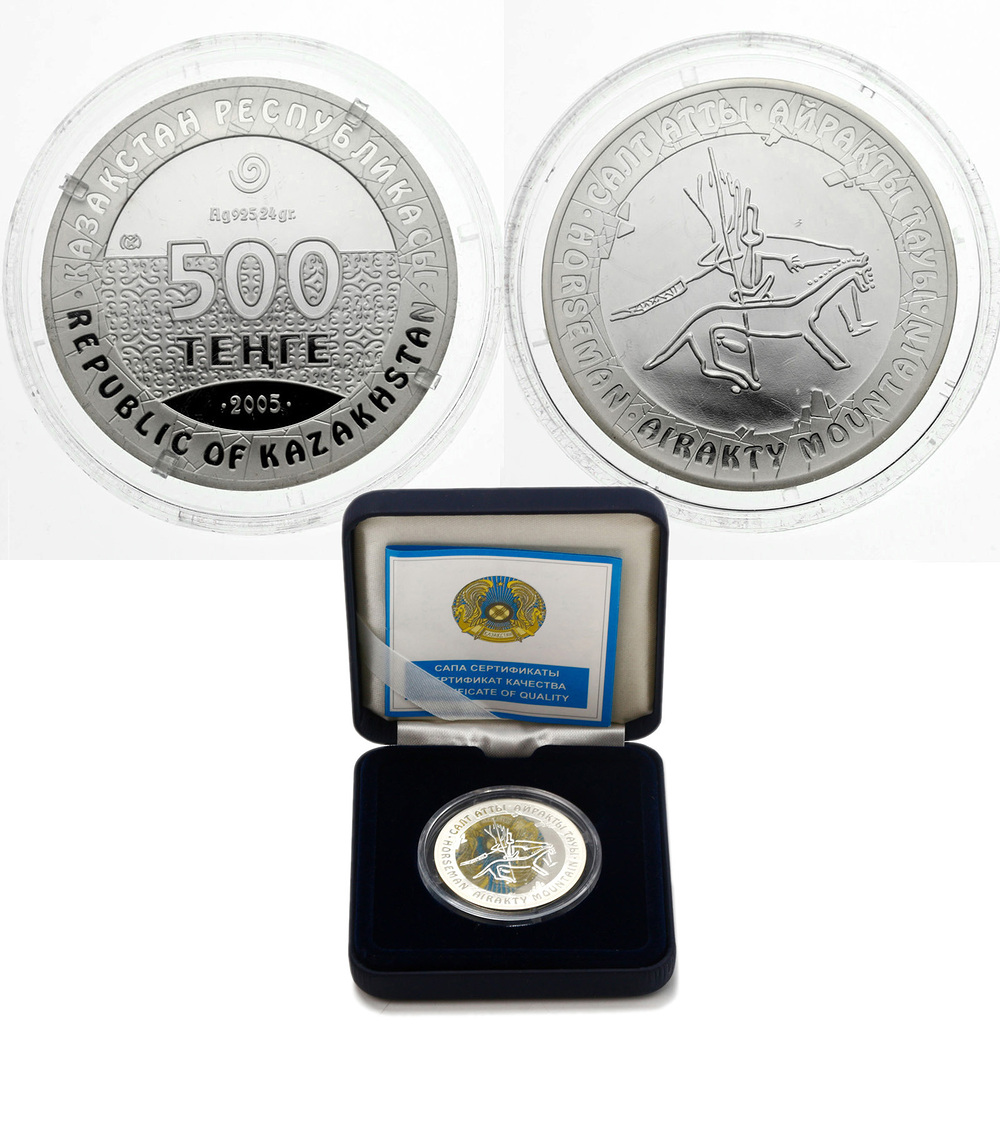 Серебро. 0,7138 oz. 0,925. 24,0 г. "Петроглифы Казахстана. Конный всадник". Тираж 3000 шт. В оригинальной коробке и капсуле. С сертификатом.