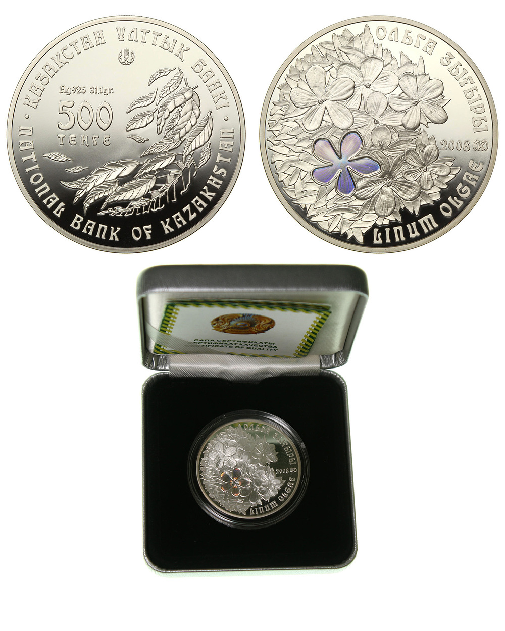Серебро. 0,925 oz. 0,925. 31.1 г. "Лён Ольги". KM#104. В оригинальной капсуле и коробке. С сертификатом.