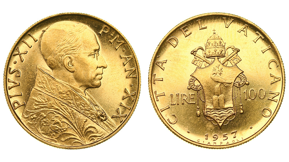 Ватикан. Пий XII. 100 лир 1957 года.