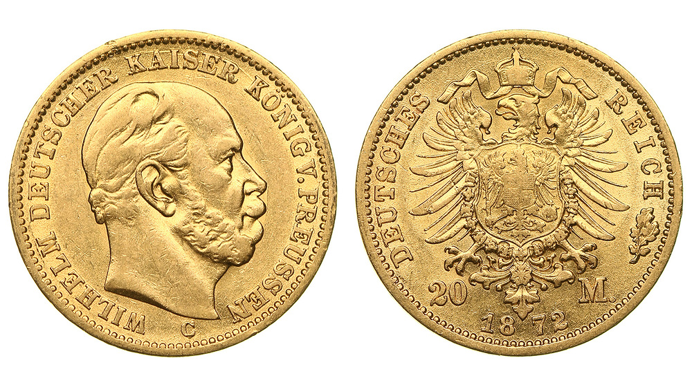Германия. Пруссия. Вильгельм I. 20 марок 1872 года.
