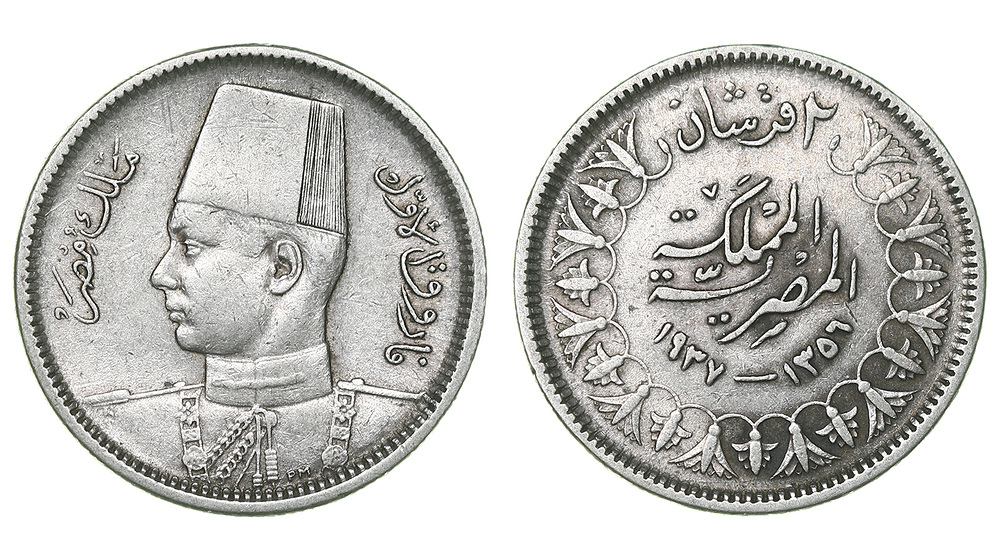 Египет. Фарук. 2 пиастра 1937 года.