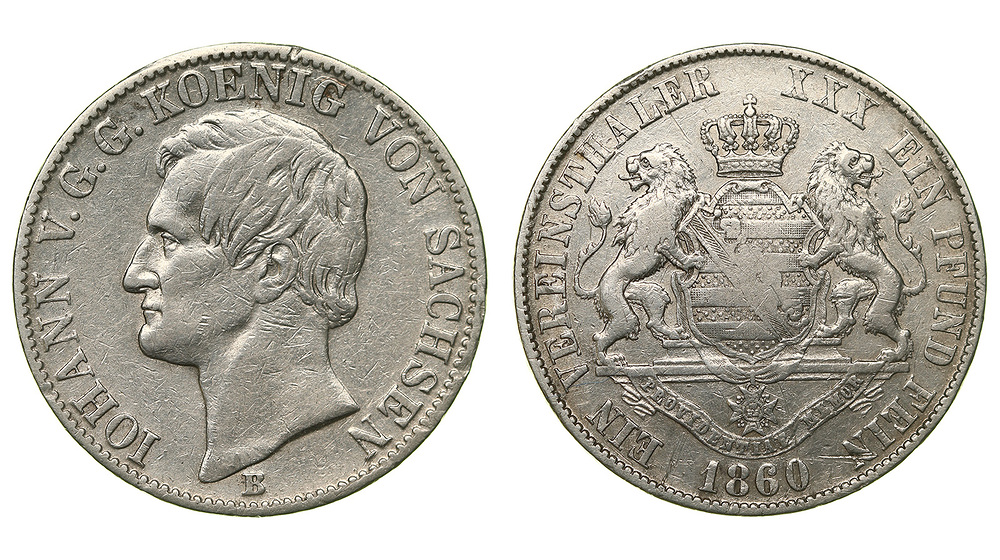 Германия. Саксония. Иоганн V. 1 талер 1860 года.