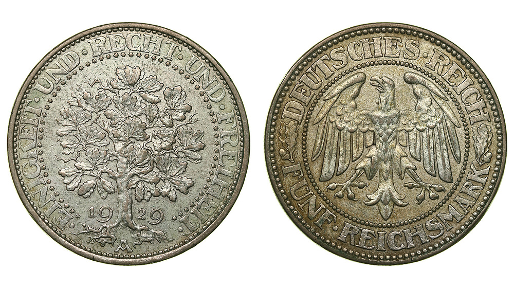 Германия. Веймарская республика. 5 марок 1929 года.