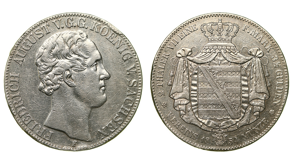Германия. Саксония. Фридрих Август II. 2 талера 1854 года.