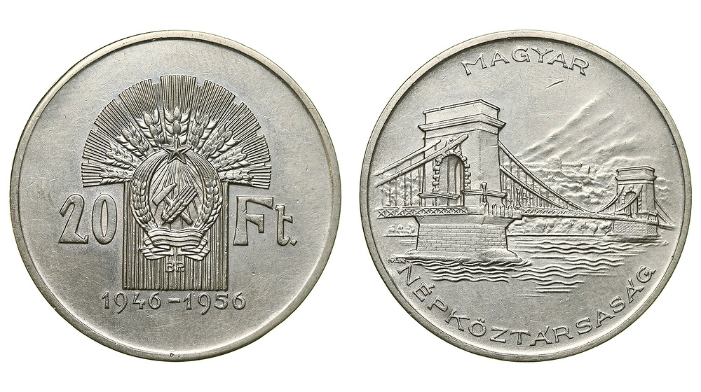 Серебро. 0,4501 oz. 0,800. 17,5 г. "10 лет Форинту". КМ#553.