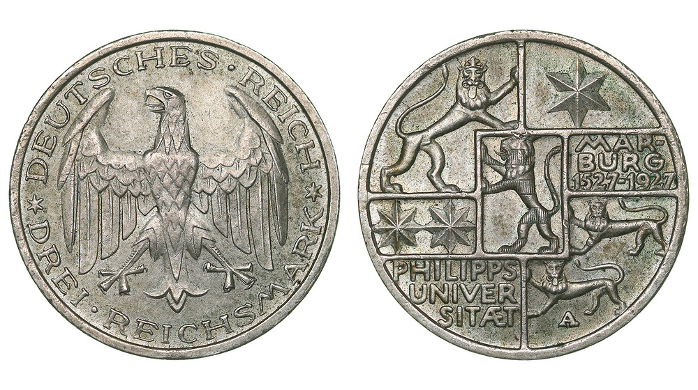 Серебро. 0,2411 oz. 0,500. 15,0 г. м.д. Берлин. КМ#53.