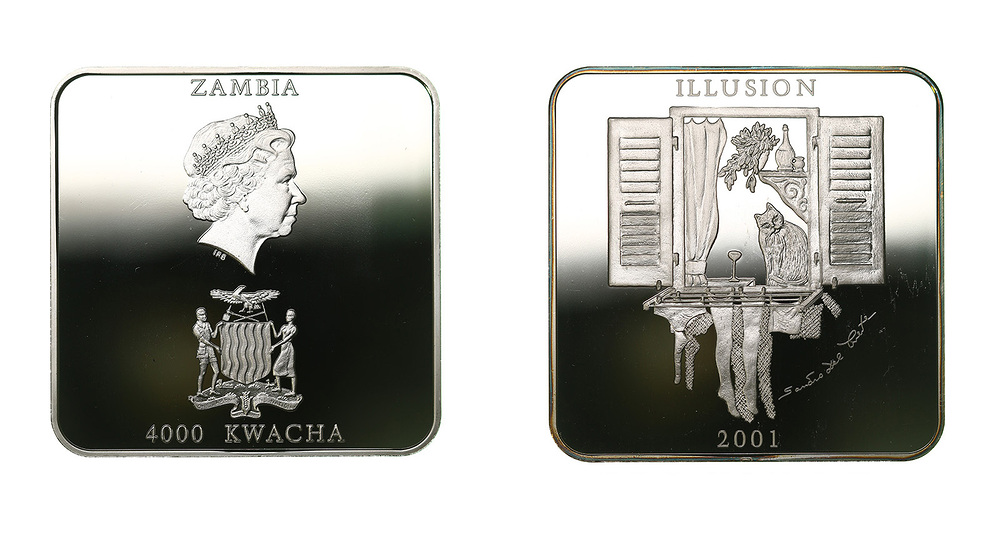 Серебро. 1,6056 oz. 0,999. 50,0 г. "Иллюзия: Кошка в окне". КМ#114. В оригинальной квадрокапсуле с сертификатом.