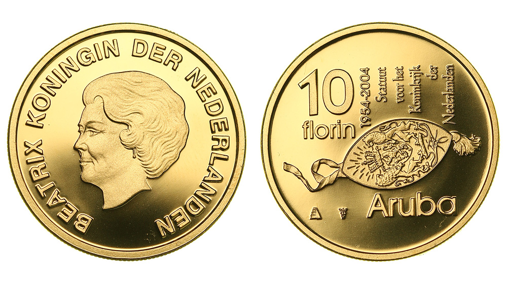 Аруба. Беатрикс. 10 флоринов 2004 года. Proof.