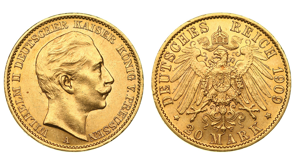 Германия. Пруссия. Вильгельм II. 20 марок 1909 года.