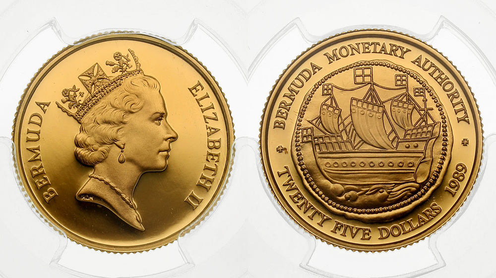 Бермуды. Елизавета II. 25 долларов 1989 года. Proof. В слабе PCGS PR69DCAM.