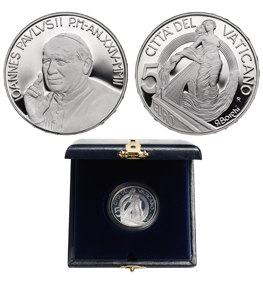 Ватикан. Иоанн Павел II. 5 евро 2002 года. Proof.