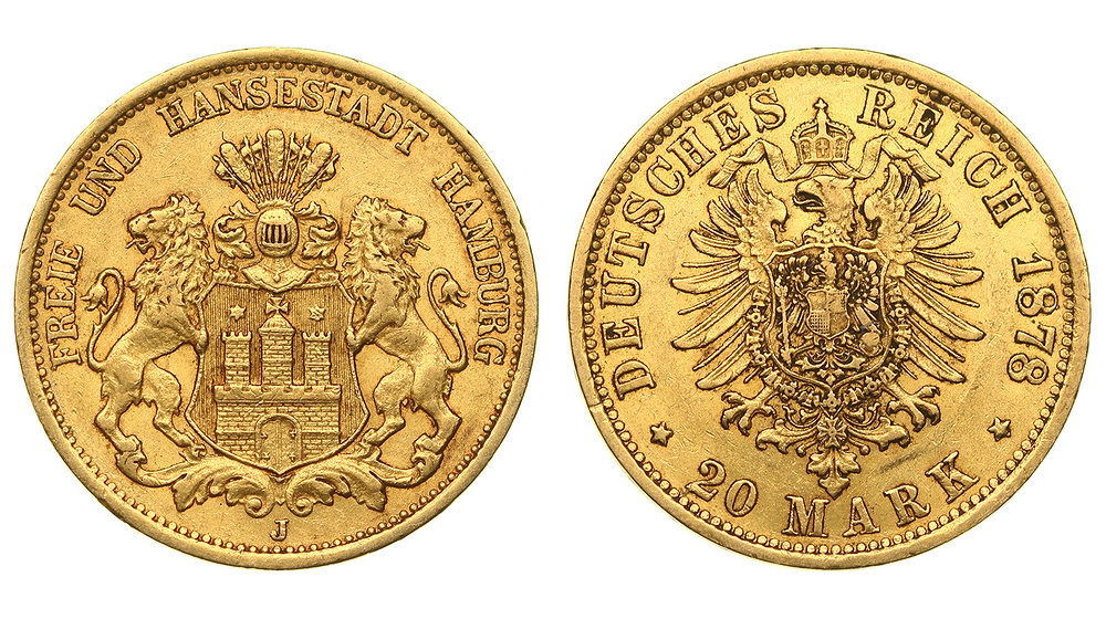 Германия. Гамбург. 20 марок 1878 года.