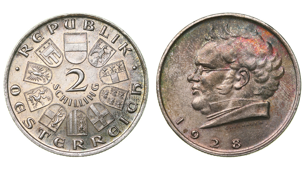 Серебро. 0,2469 oz. 0,640. 12,0 г. "Композитор Франц Шуберт". КМ#2843.
