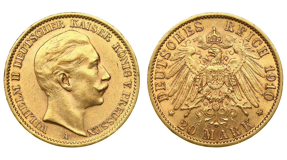 Германия. Пруссия. Вильгельм II. 20 марок 1910 года.