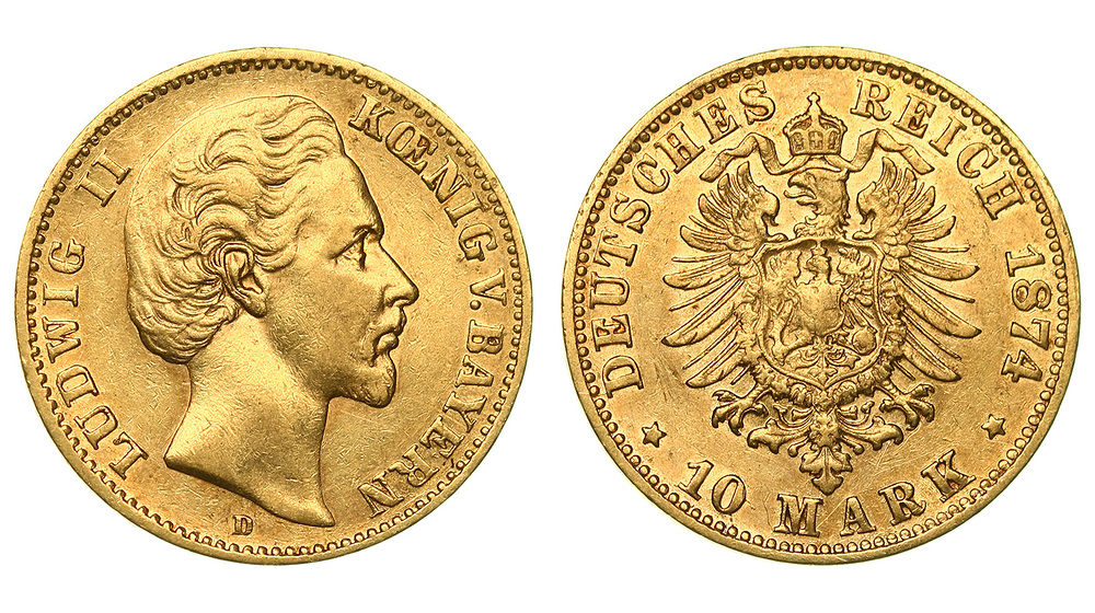 Германия. Бавария. Людвиг II. 10 марок 1874 года.