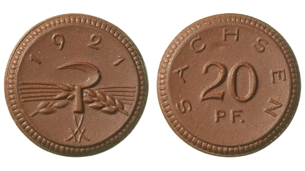 Германия. Веймарская Республика. Саксония. 20 пфенигов 1921 года.