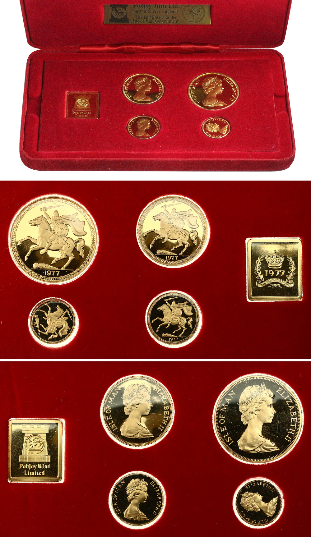 Мэн о-в. Елизавета II. Набор из 4 монет и жетона 1977 года.