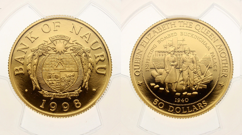Науру. 50 долларов 1998 года. Proof. В слабе PCGS PR70DCAM.