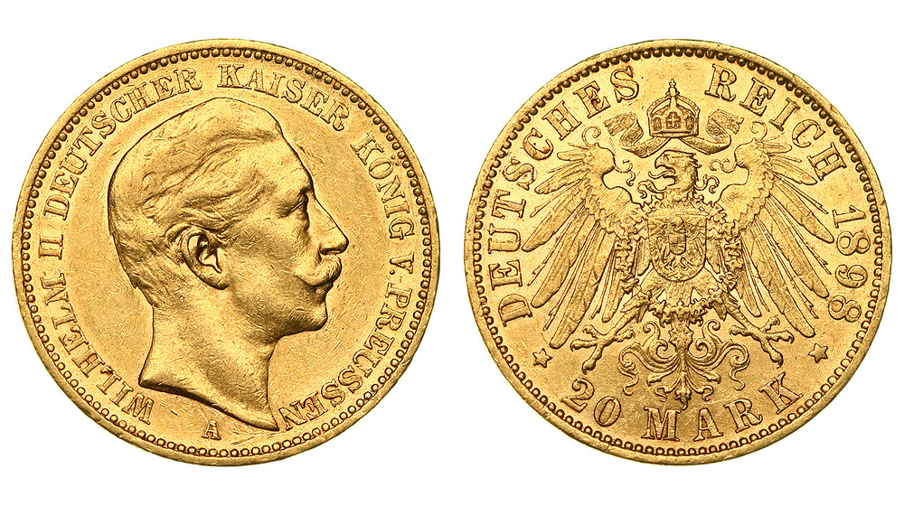 Германия. Пруссия. Вильгельм II. 20 марок 1898 года.