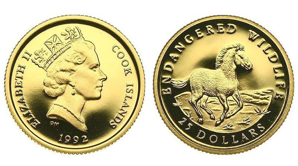 Кука о-ва. Елизавета II. 25 долларов 1992 года. Proof.