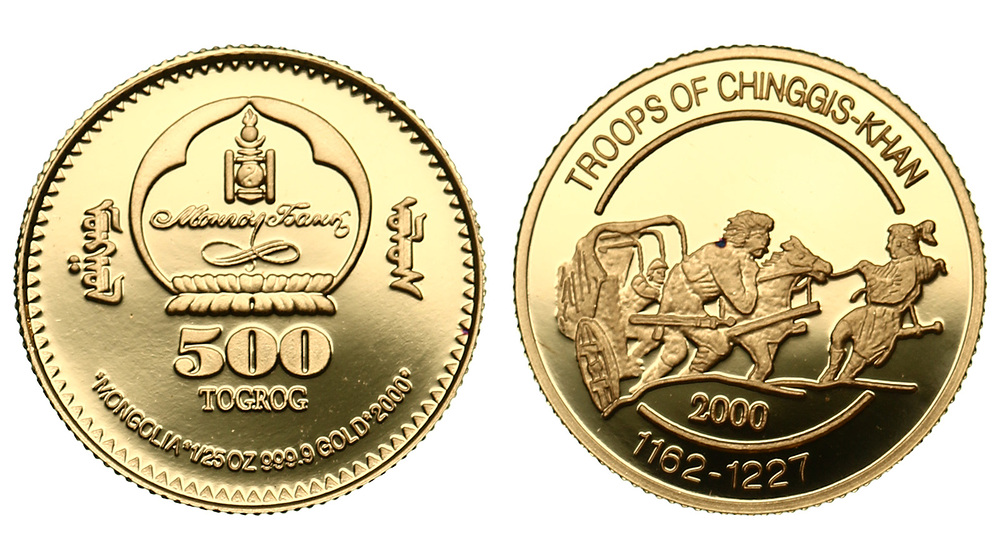 Золото. 0,0389 oz. 0,9999. 1,21 г. "Войска Чингисхана". KM#217.