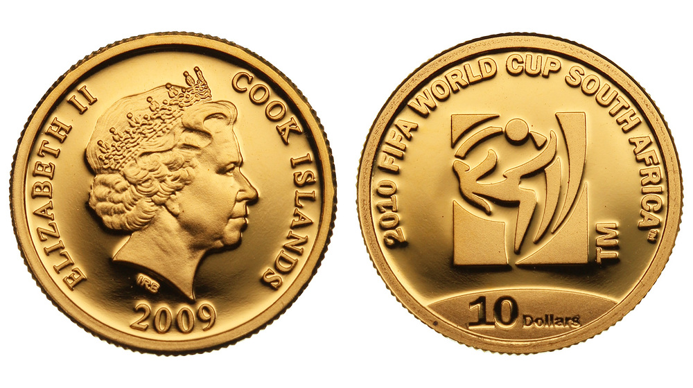 Золото. 0,0321 oz. 0,999. 1,0 г. "ЧМ по футболу 2010". KM#1492. В капсуле.