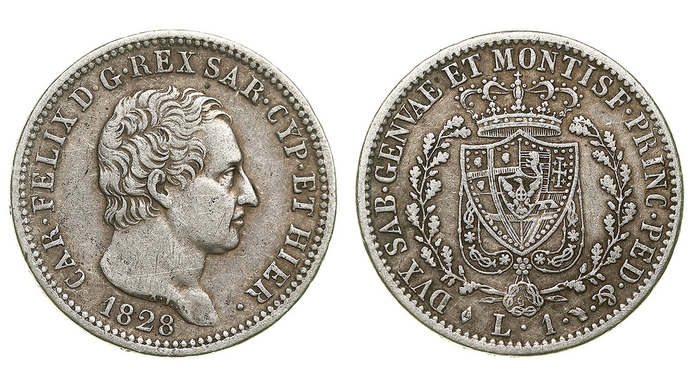 Италия. Сардиния. Карл Феликс. 1 лира 1828 года.