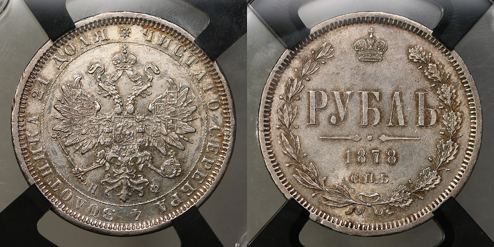 Россия. 1 рубль 1878 года. СПБ НФ. AU55.