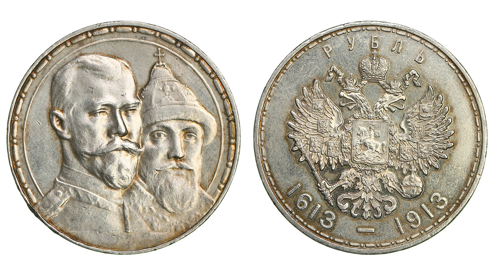 В память 300-летия дома Романовых. Выпуклый чекан. Биткин №336 стр.956, Уздеников №4194. Незначительная механика на гурте на 7 часов к аверсу.