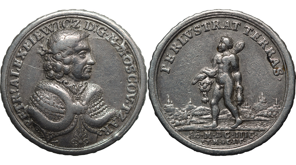 Медаль в память первого путешествия Петра I по Европе (в память Великого посольства 1697–1698 гг.).
