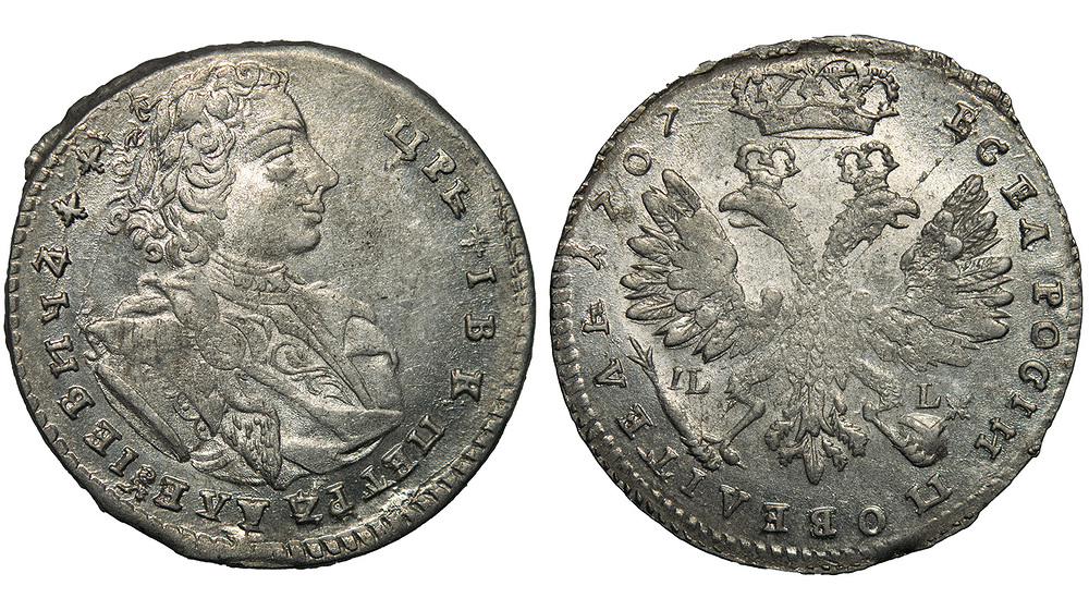 Кадашевский монетный двор. Малая голова. В конце круговой надписи 2 креста. Гурт гладкий. Серебро, 6,41 г. Дьяков (ЗС) #255 (R2). Биткин #3800 (R1). Уздеников #4854 (точка). ГМ #42.7. 40 рублей по Петрову. Сохранность превосходная, штемпельный блеск.