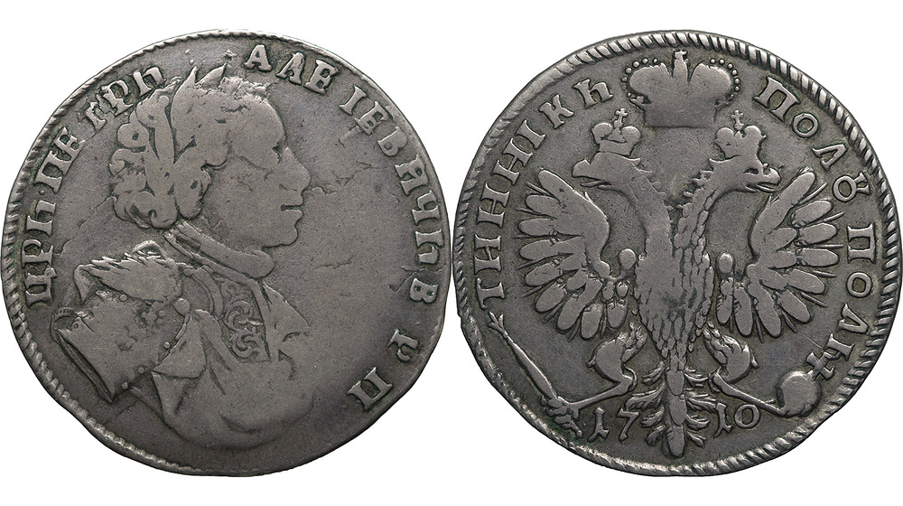 Кадашевский монетный двор. Дата разделена хвостом орла. Гурт гладкий. Серебро, 7,06 г. Дьяков (ЗС) #339 (R2). Биткин #732 (R1). Уздеников #0523 (черта). ГМ #51.10. 6 рублей по Петрову. Сохранность очень хорошая, красивая патина. Редкий типовой полуполтинник.