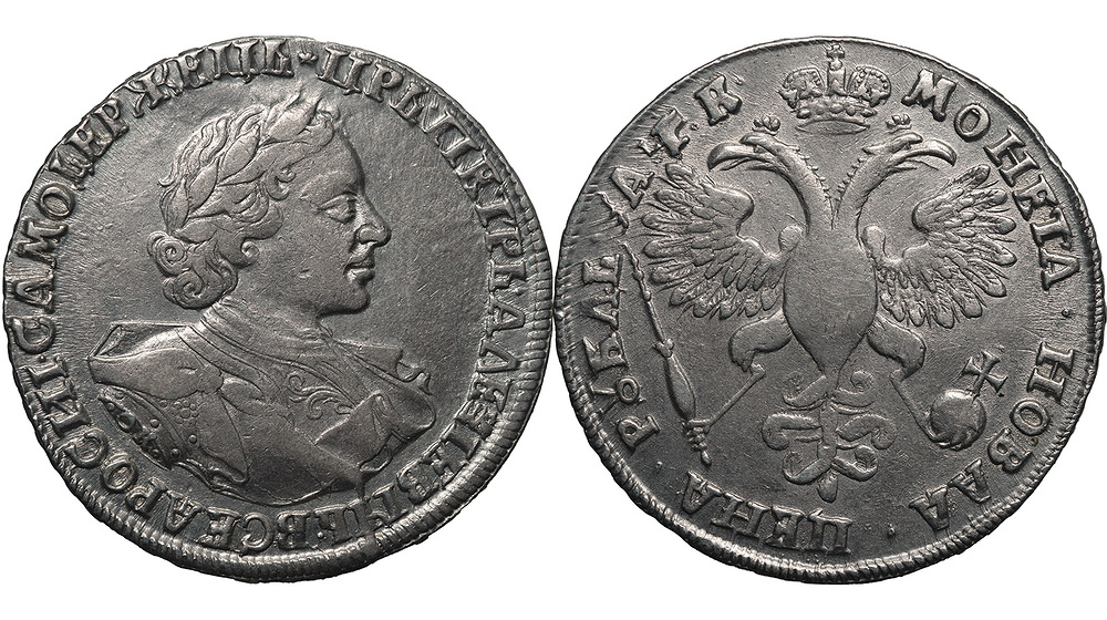 Кадашевский монетный двор. Портрет в латах, «ОК» между точек в обрезе рукава, розетка из точек на плече, арабески на груди, над головой корона. Гурт надпись. Серебро, 28,77 г. Дьяков (ЗС) #965 (R2). Биткин #410. Уздеников #0586. 4 рубля по Петрову. Сохранность практически отличная.