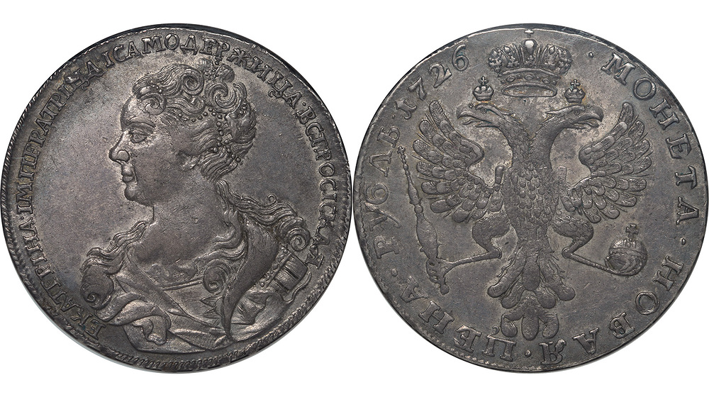 Красный монетный двор. Портрет московского типа влево. Аверс: над наплечником 4 точки и 3 ромбика, «Ц» в слове «IМПЕРАТРИЦА» с выколом. Реверс: хвост орла узкий, в крыльях по 9 контурных перьев, «Ц» с хвостиком, без точки после даты, точка перед «МОНЕТА». Гурт надпись. Серебро. Петрунин #80.1. Дьяков #14; 23 (аверс), #9 (реверс). Биткин #28; 29 (аверс), #22 (реверс). Уздеников #0644. ГМ #8.4; 9.1 (аверс), #7.12 (реверс). Уздеников #0644. 3 рубля по Ильину. 2 рубля 50 копеек по Петрову. Монета в слабе NGC старого образца, AU58. Великолепный по эстетике экземпляр: выразительный портрет, прочекан мелких деталей, красивая патина. Монета коллекции Ирвина Гудмана, с аукциона Superior Galleries «The Irving Goodman Collection of Russian Coinage». Беверли Хиллз, 11-12 февраля 1991 года, лот 159.