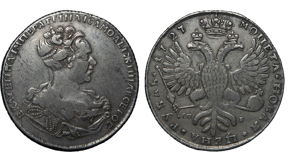 Санкт-Петербургский монетный двор. Петербургский тип, высокая прическа, над корсажем кружева, легенда аверса заканчивается двоеточием. Звёзды разделяют слова легенды реверса, обычная «Ц» в слове «ЦЕНА». Гурт шнуровидный. Серебро, 28,12 г. Петрунин #274 (R). Дьяков #14. Биткин #187 (R1). Уздеников #0664. ГМ #22.3. 5 рублей по Ильину. 8 рублей по Петрову. Редкая. Сохранность практически отличная, красивая патина. Довольно редкий и интересный тип портрета.