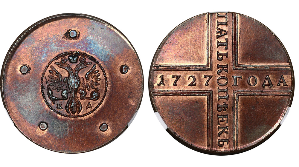 Чеканка заново изготовленными штемпелями. Гурт гладкий. Медь, 18,69 г. Петрунин #367 (R1) – приведено изображение данного экземпляра. Дьяков #As 38 N. Биткин # Н322 (R2). Уздеников #2462Н (точка). Брекке #31 (черта, описан вариант с сетчатым гуртом). ГМ #26.18 (описан вариант с сетчатым гуртом). 1 рубль по Ильину. Монета в слабе CPRC, MS66 RB. Безукоризненный экземпляр! Естественный красно-коричневый цвет меди, идеальные глянцевые поля. Из коллекции Роберта Хессельгессера. С Аукциона Ira & Larry Goldberg #5. Лос-Анджелес, 7 июня 2000 года, лот 5165. Аукцион Stack's Bowers Galleries «The Lake Michigan & Springdale Collections». Роузмонт, 21 июня 2006 года, лот 279. Аукцион Heritage Auction Galleries #3000. Лонг Бич, 30 мая 2008 года, лот 52620.