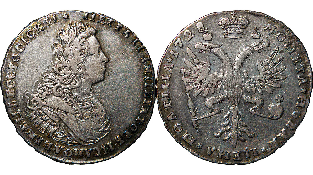 Кадашевский монетный двор. Московский тип, бюст внутри легенды, 4 наплечника, бант в причёске, над головой звезда. Цифра «8» даты с заплывшей верхней частью. Гурт надпись. Серебро, 14,57 г. Дьяков #9. Биткин #135 (R). Уздеников #0687. ГМ #7.8. 4 рубля по Петрову. Сохранность практически отличная.