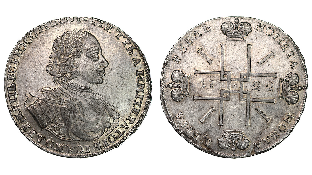 Редкая. Остаточный штемпельный блеск. Кадашевский монетный двор. Без инициалов медальера. Надпись: «ВСЕРОССИIКИI». С пальмовой ветвью на груди, над головой – трилистник между точками. Биткин R, №500, стр. 62, Уздеников №0603 (редкость - "точка"). Петров - 4 рубля.
