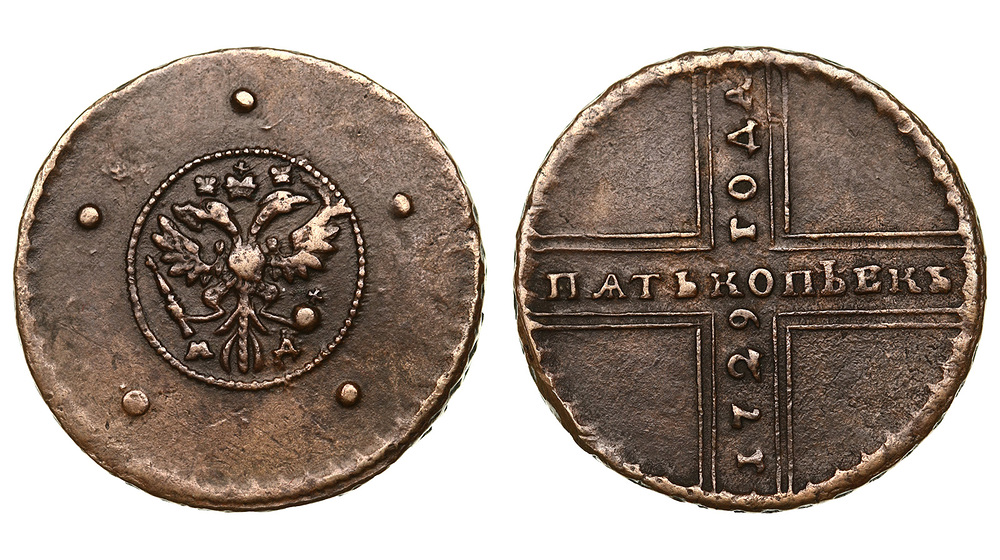 Россия. 5 копеек 1729 года. МД. XF DETAILS.