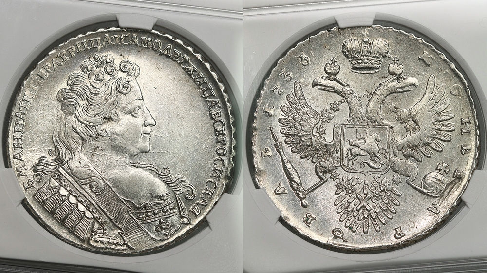 Россия. 1 рубль 1733 года. AU58.